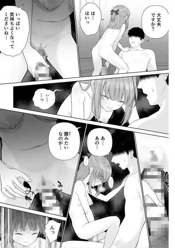 お母さんにだけ辛い思いをさせられない。娘の母親は風俗店で働いている。そんな思いを母親への手紙としてしたためる。風俗店で待機中、ヒナに突然氏名が入る。五番の部屋だ。一見見た目は普通そうなサラリーマン。ズボンを脱がして出てきたチンポがあまりにも大きくてびっくりするヒナ。ヒナは続けておっぱいをさらけ出す。デカい乳輪がコンプレックスだったようで、恥ずかしがるヒナ。そして、ゴムをつけて挿入。するとプチっと音を立てるマンコ。そう、ヒナはこの瞬間まで処女だったのだ。