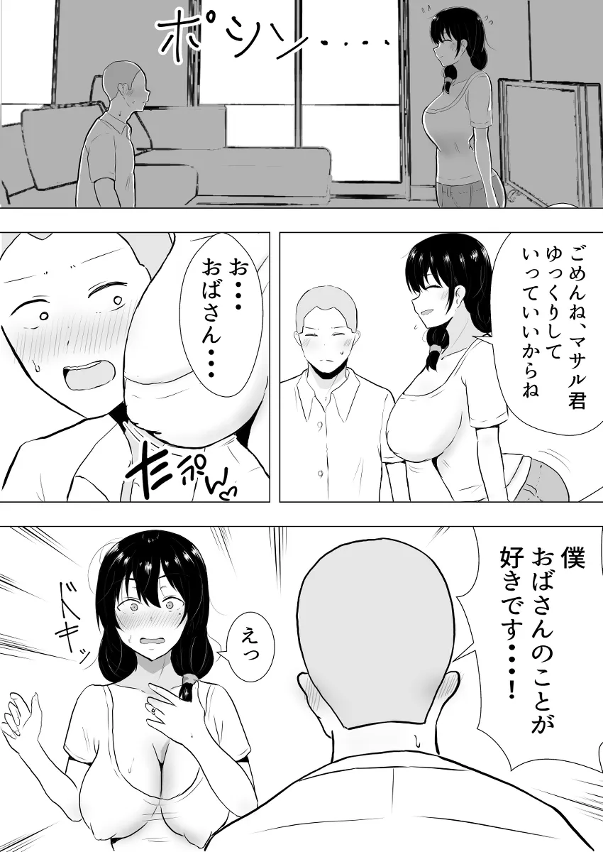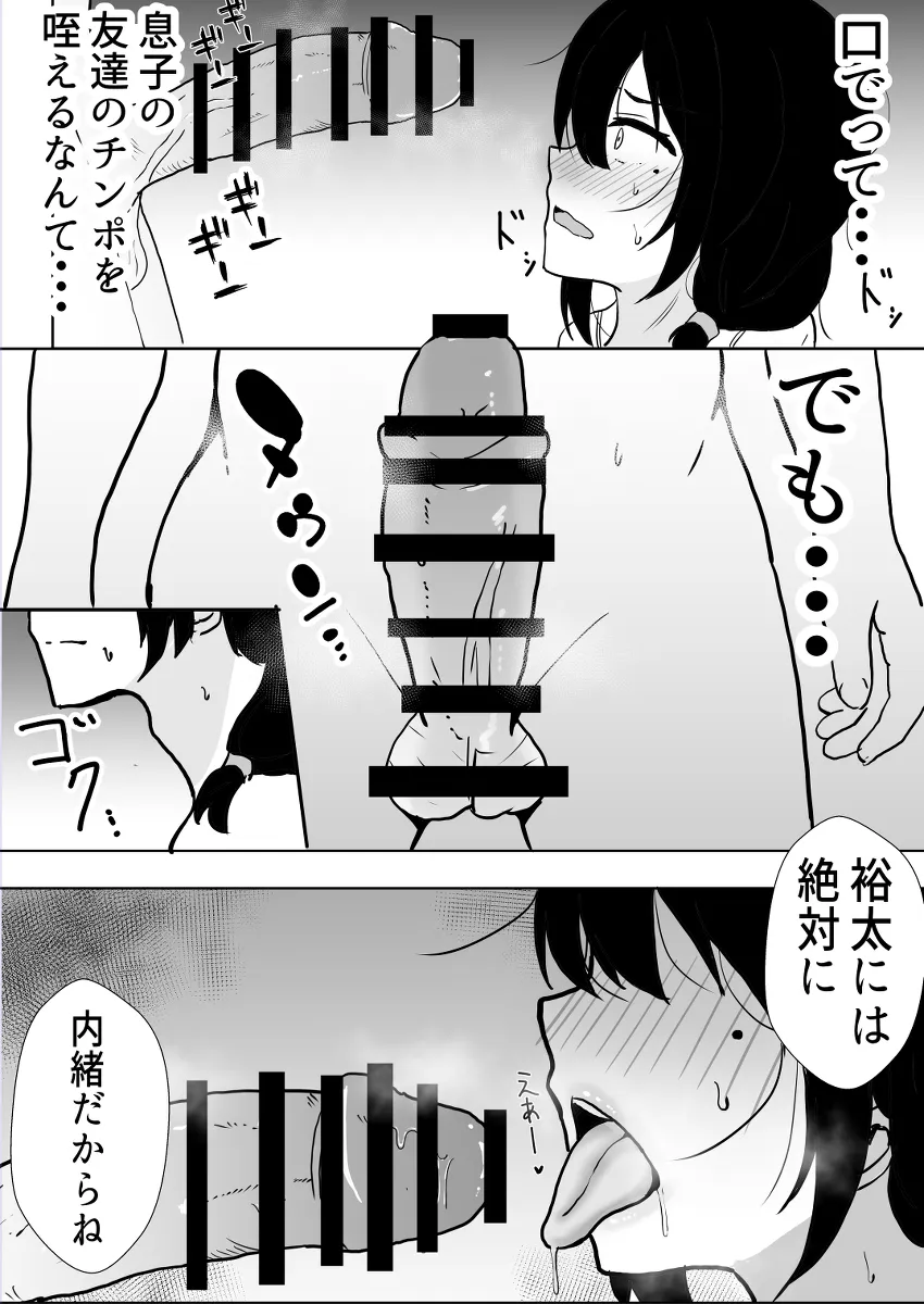 母親「汐里」のことが大好きな息子の裕太はいつも母親をオカズにシコっていた。俺がかーちゃんを幸せにしてやるんだっ!この日、裕太の友達のマサルが遊びに来た。家で一緒にゲームをしていると裕太の塾の時間になって裕太は一人で塾に行ってしまう。家には汐里とマサルが二人きりに。そして、マサルは本気で汐里に告白する。「僕、おばさんのことが好きです!」汐里はマサルの勃起したチンポを手コキでシゴき始める。シコシコしごいているとマサルは絶頂に達しザーメンを汐里に顔射。汐里も汐里でマサルの若く猛々しいチンポに興奮してしまっていた。