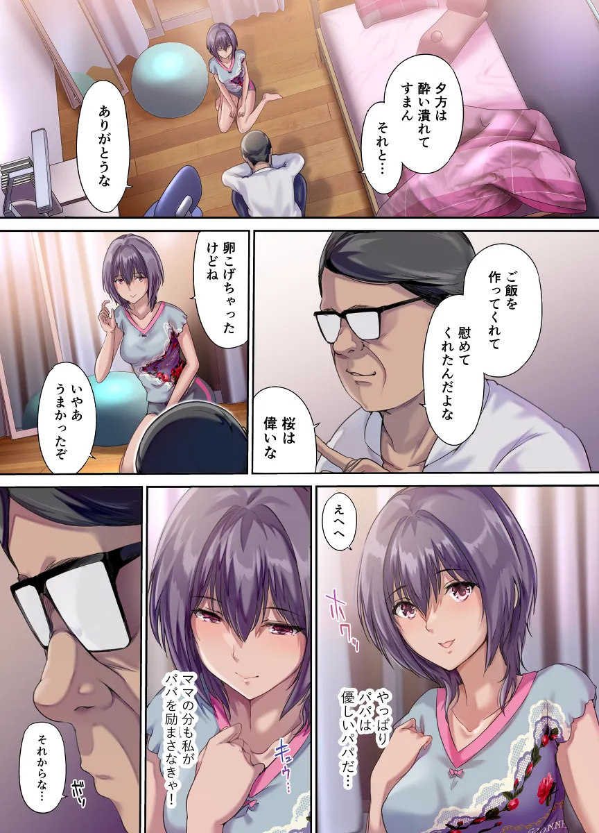 桜は父親と二人暮らし。父親は母親が亡くなってからすっかり元気がなくなってしまった。仏壇の前でずっと項垂れていることもしばしば。この日、桜は父親を励まそうと母親がしていたエプロンをつけてご飯を作ってあげたのだが、これが悲劇の始まりだった。父親は桜に母親の面影を見てしまったのだ。風呂から上がると父親が桜のパンツの匂いを嗅いでいた。その日桜の部屋にやって来た父親はなんと桜を押し倒してしまう。今日だけだよ?今日だけエッチしたら明日からは普通の家族。そう約束して桜は父親のチンポを受け入れてしまう…。