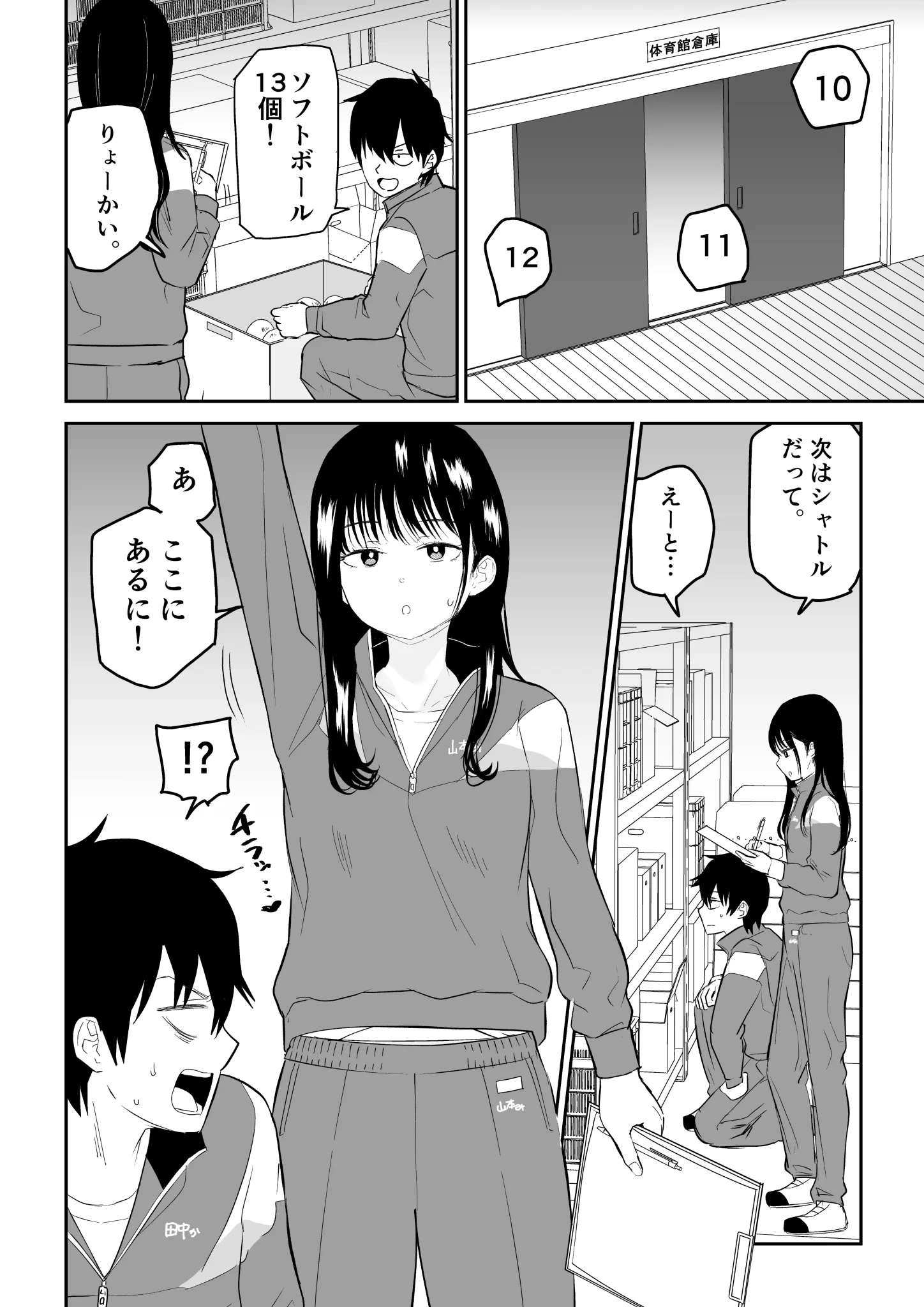 奏汰は友達と遊ぶ約束をしようとした瞬間、先生に呼び止められて体育倉庫の点検を美桜と一緒にすることになってしまう。美桜は同じ学年だがクールで大人びていて年上に見える。見た目もかなりの綺麗系JKだ。体育倉庫の点検も終わりに差し掛かろうとした頃、中で点検しているとも知らずに外から鍵をかけられてしまう。そして、何故か美桜の肩を揉んでくすぐり攻撃をする奏汰。美桜も心のどこかでちょっとエロいことをされるのではないかと期待していた。美桜は奏汰に電気あんまをされてオーガズムに達してしまい…。