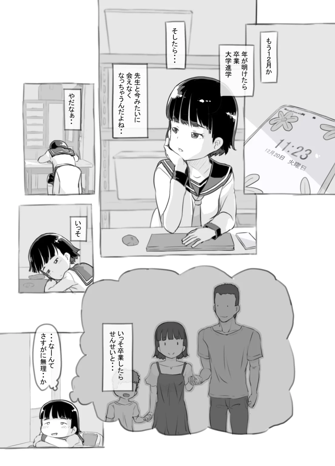 このJKは先生と付き合っている。生徒が教師と付き合うという話は実際にもよくある話だ。学校は冬休み。JKは先生に会うために学校に通う。誰もいない教室、誰もいない部室。学校の玄関で先生に会ってそこでキス。他の生徒にバレないようにハラハラドキドキのキスは一層思春期JKの性本能を刺激する。部活も終わり部室に来た先生。「じゃあ、するか?」とエッチ開始。先生の大きなチンポがマンコに徐々に入っていく―。部室でまさか全裸になってセックスしちゃうなんて…。