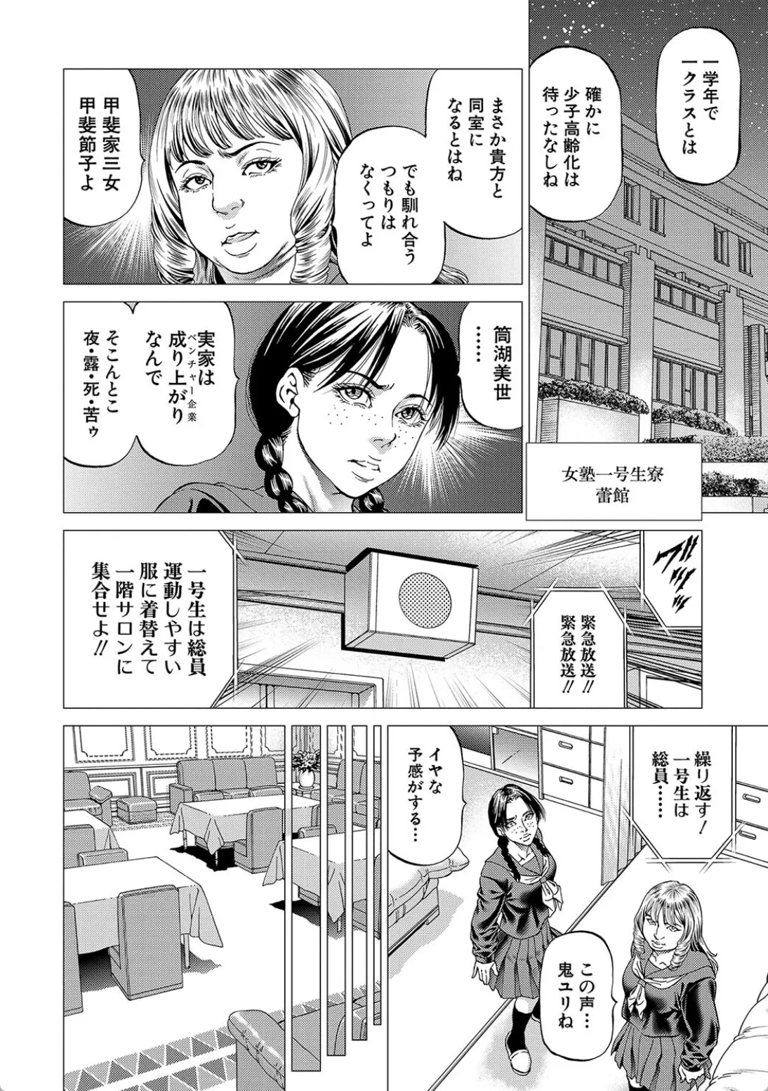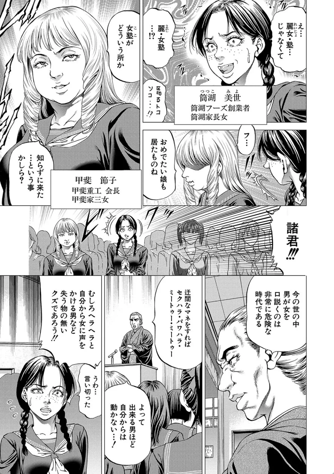 今日から始まる学園生活。一体どんなことが待ち受けているのか。美世は心をときめかせていた。名門、麗女塾学院高等学校。ここには名だたるお嬢様達が通っている。今日は始業式。美世はそんな幻想を打ち砕かれる。「時代は女が男を狩る時代」この学校は、肉食女子の育成学校だったのだ。盗撮犯を見せしめに、早速善行女子生徒の前で射精を見せつける。なんなんだこの学園は…。女子寮には一切防犯セキュリティがなされていない。これでは男が侵入し放題である。案の定男共が侵入してきて、女子生徒達に緊急招集がかかる。そして、女子生徒たちはペニバンを装着して、男共を捕えてアナルを犯す。男共は無様にザーメンをその場にぶちまけて…。